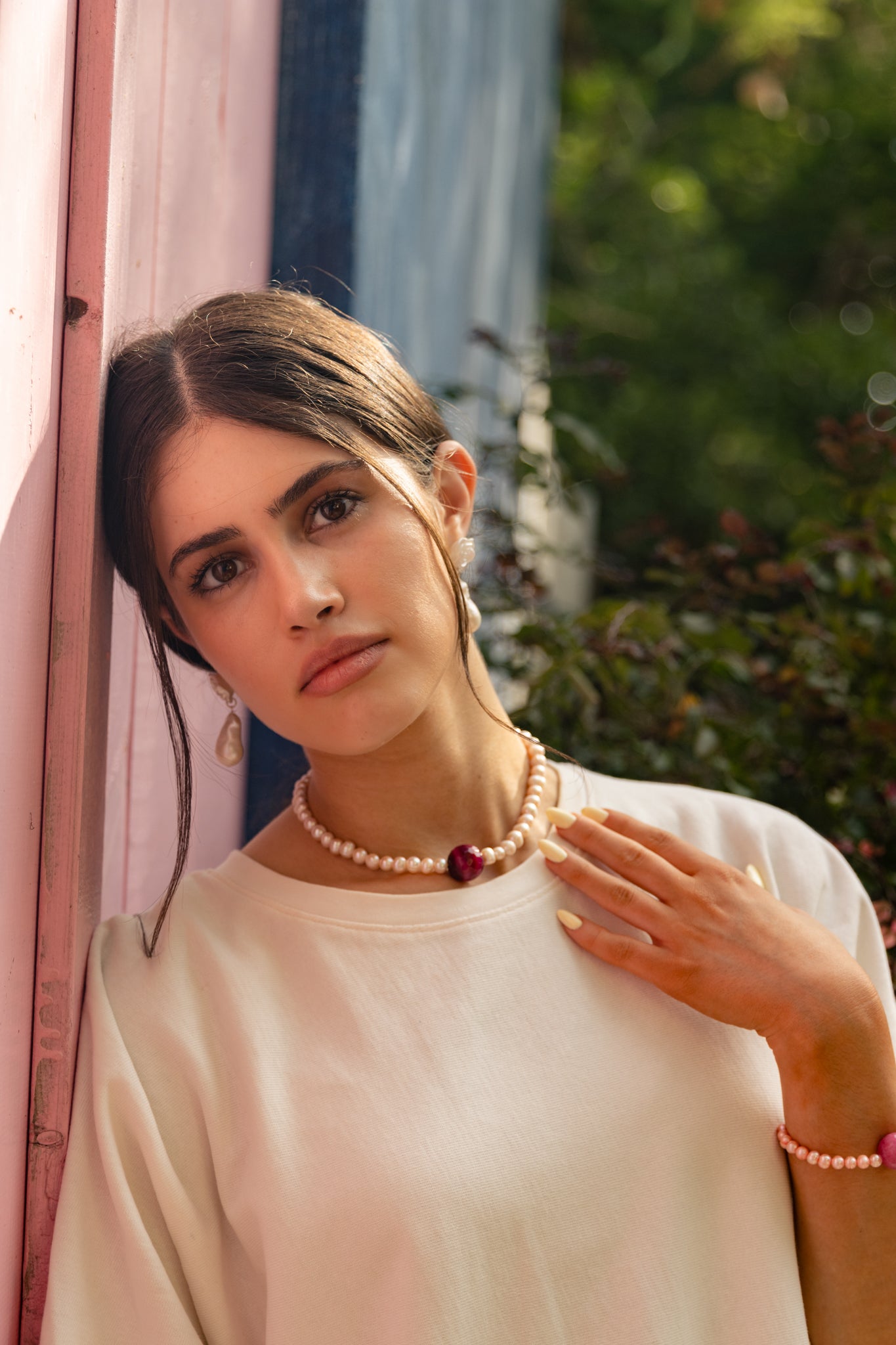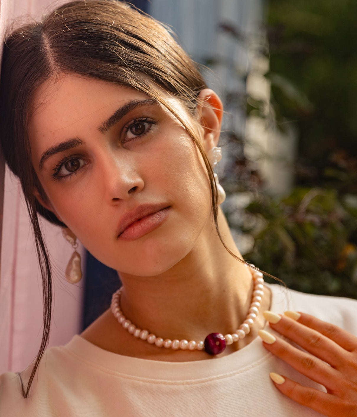 Blush Ruby | שרשרת פנינים עם אבן מרכזית